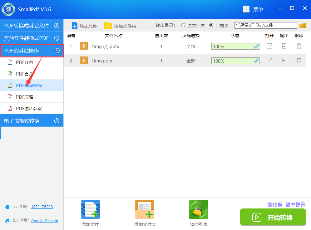 5、一切准备就绪后,我们就点击“开始转换”来破解我们的pdf文件密码。